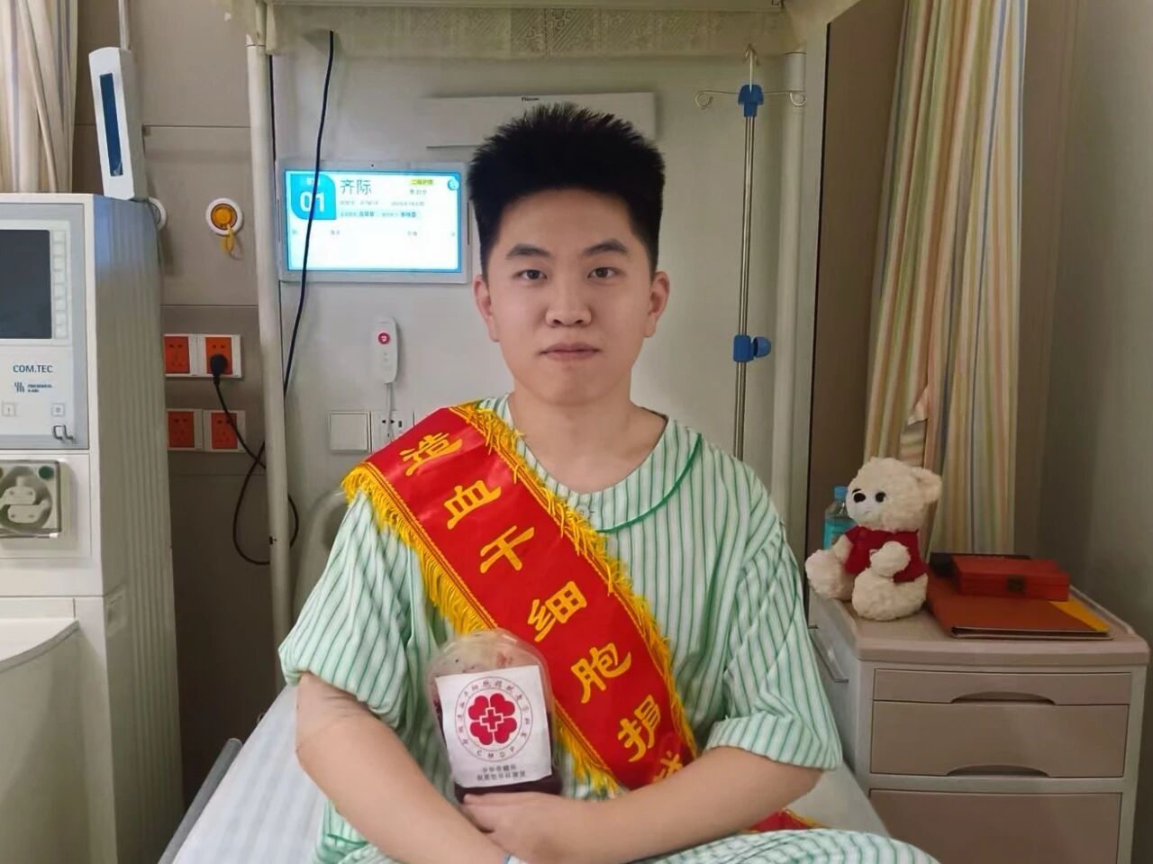 9月,齐际按安排入住医院开始造血干细胞动员。每天注射动员剂时,身体会出现轻微不适,但他从不抱怨,反而常安慰身边担心他的医护人员和老师:“这点难受不算什么,想到远方的患者还在等着我,我就充满了力量。”成为天津第459例造血干细胞捐献者后,齐际真诚地说:“有时,志愿不需要太多犹豫,跟着内心走、去帮助他人才是最珍贵的。”