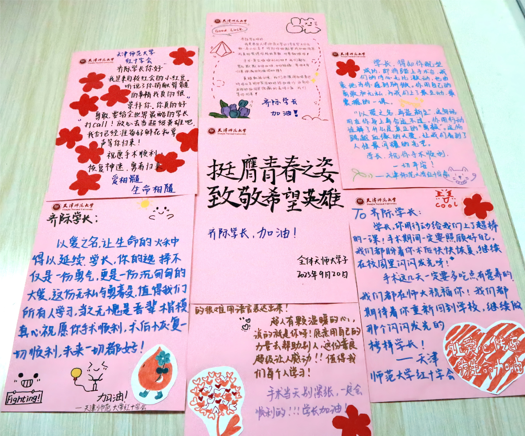 同学们以信件的方式为齐际加油鼓劲(央广网发 天津师范大学供图)