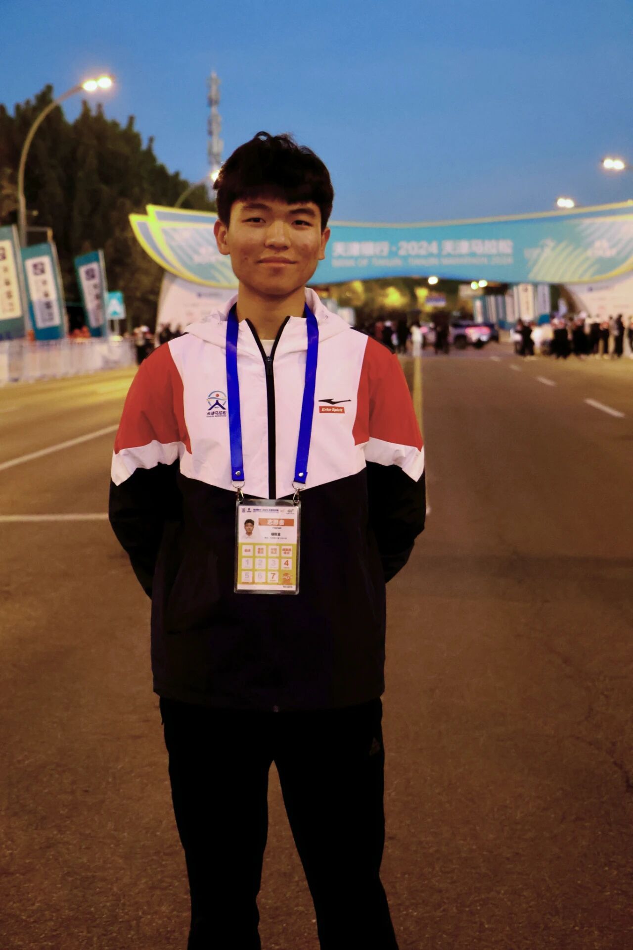 胡胜业在天津马拉松完成志愿服务(央广网发 天津工业大学供图)