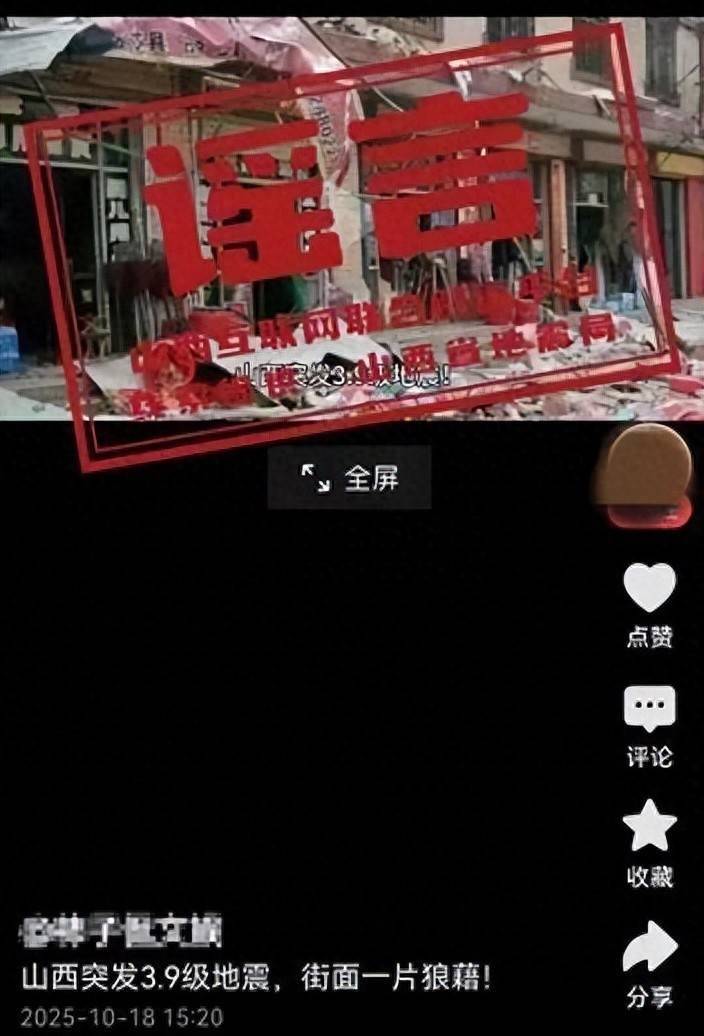 10月18日,有网民发布“山西突发3.9级地震,街面一片狼藉!”相关信息,引发网民关注,经向相关部门确认,该信息与事实不符。